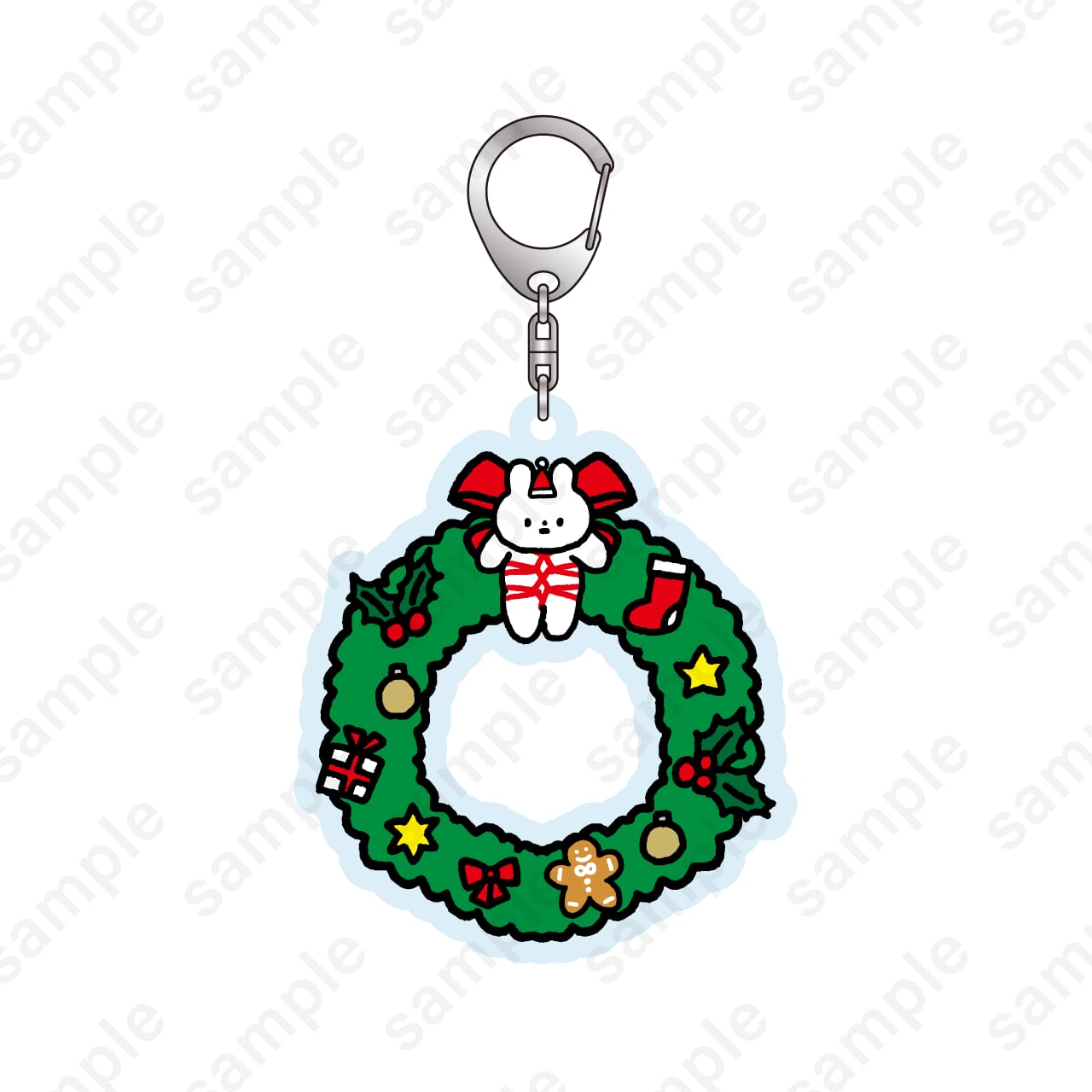 クリスマスリースデザインのアクリルキーホルダー。トップにはきっこうちゃんがデコレーション。