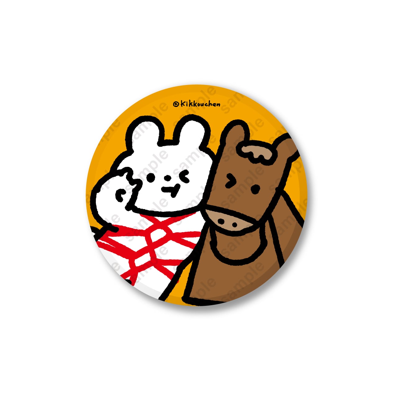 お正月 ラメ缶バッジ きっこうちゃんと三角木馬くん(ピース)