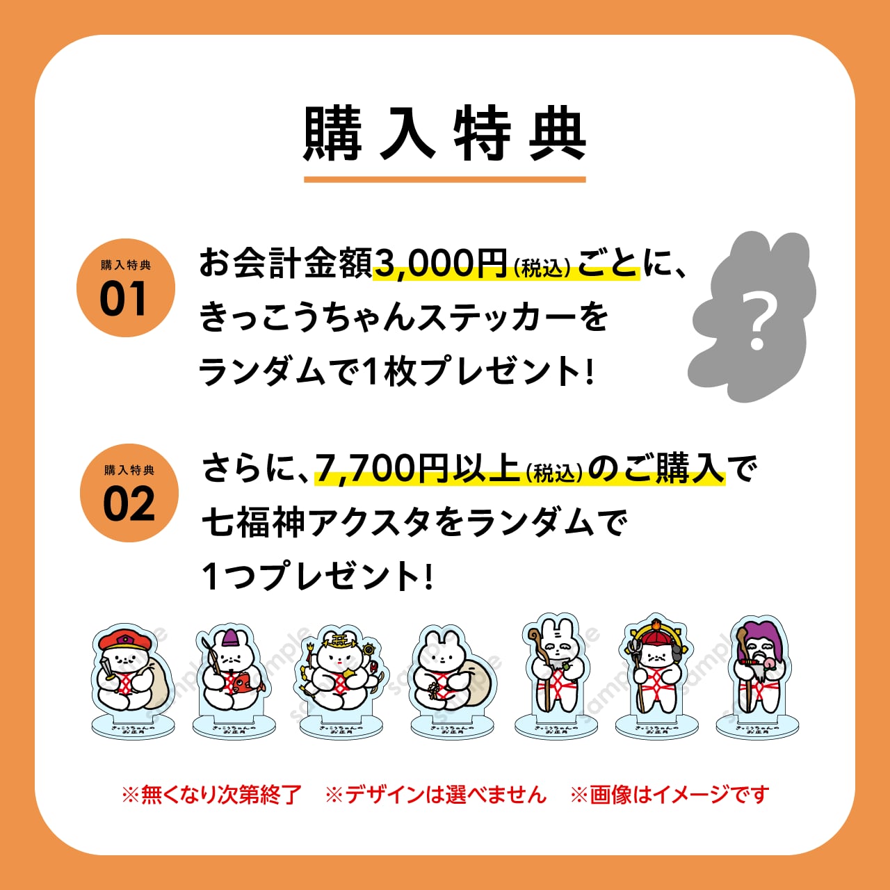 3,000円(税込)毎のお買い上げできっこうちゃんステッカーをランダムで1枚プレゼント。